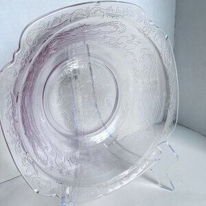 Vintage Pink Glass Depression Era Bowl With Floral Etching & Scalloped Edges **