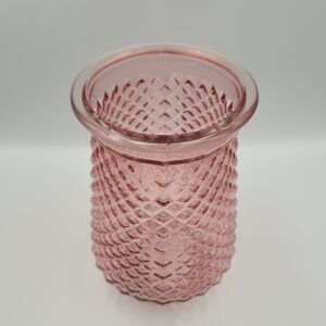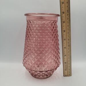 Vintage Pink Glass Diamond Cut Flower Vase 7.75" Country Cottage Traditional