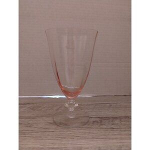 This vintage pink glass goblet features an elegant design with a subtle pink hue and a refined stem, suitable for sophisticated table settings.