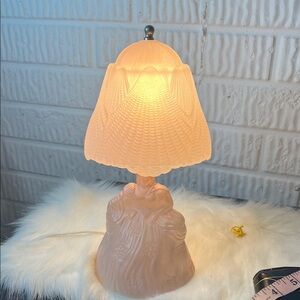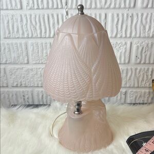 Elegant vintage table lamp with a pink shell design. Perfect for adding a touch of charm to any room.