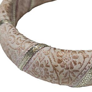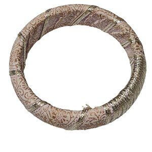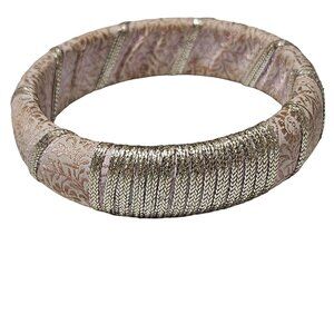 This elegant bangle bracelet combines pink brocade with silver and gold accents, offering a lightweight yet sophisticated accessory ideal for refined styling.