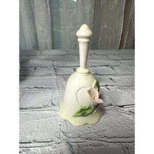 This vintage bell is a beautiful addition to any collection. The pink and green calla lily design is hand-painted on a porcelain ceramic material. The bell shape and floral pattern make it a perfect decorative piece for any room. It is 5 inches tall and comes unboxed.