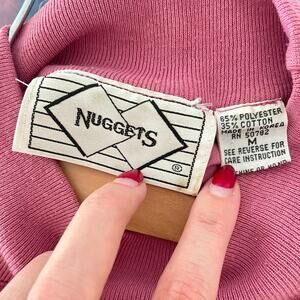 nostalgic and cozy, this vintage nuggets long sleeve top channels 90s loungewear with its soft knit feel, mock neckline, cuffed sleeves, and delicate embroidered button pocket detail. the faded rose pink hue and relaxed fit give it an easy retro charm, perfect for layering or wearing solo year-round. pairs effortlessly with denim, skirts, or lounge bottoms for a casual yet feminine look.