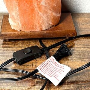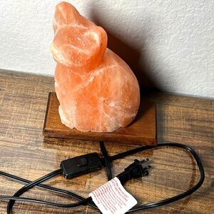 This listing is for one "Vintage Pink Himalayan Salt Lamp Cat Shaped Carved Orange Rock Crystal Wood Base"