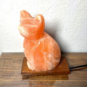• Carved Himalayan salt lamp in the shape of a cat