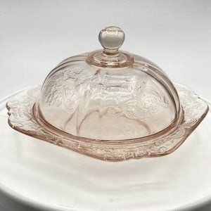 Vintage Pink Indiana Madrid Pattern Covered Butter Dish Federal Glass Company