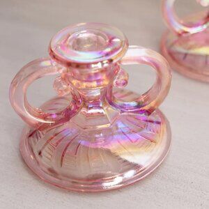 Vintage Pink Iridescent Handled Short Candlesticks (Set of 2)