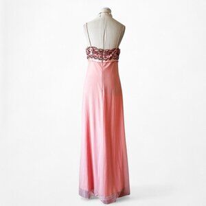Vintage Pink Knit Bodycon Floral Beaded Mesh Maxi Prom Dress Size M/L