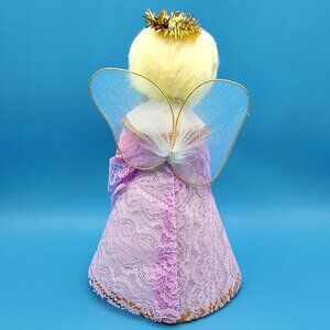 Vintage Pink Lace Angel Tree Topper Gold Halo Tulle Wings Foil Hymn Book 1960s