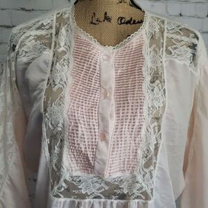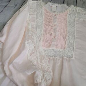 Elegant nightgown with lace details. Soft pink fabric. Long sleeves.