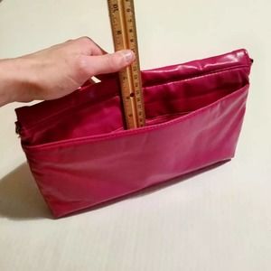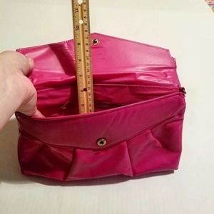 A super cute 80s leather envelope clutch for you! Folds over the front with clasps and has a deep back pocket with a clasp. Hooks on each side for straps. (No straps included unfortunately) Perfect to bring with you to a fancy dinner! Big enough for your phone and wallet!