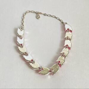 Vintage Pink Lucite Moonglow Leaf Necklace & Bracelet Set Silver Tone 60s Retro