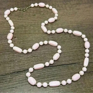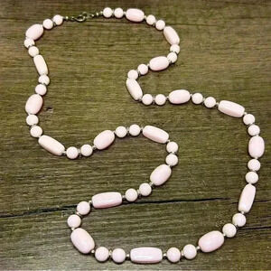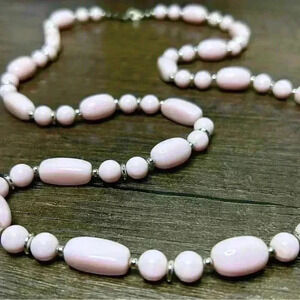 Vintage Pink Milk Glass and Silver Tone Beads Necklace