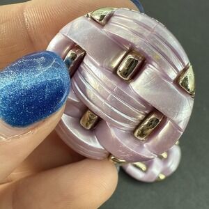 Vintage Pink Moonglow Thermostat Basket Weave Clip-on 1" Earrings