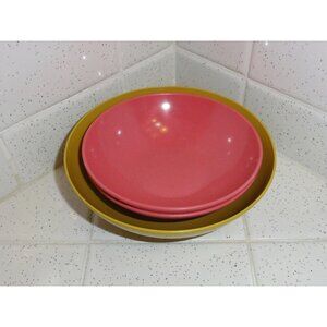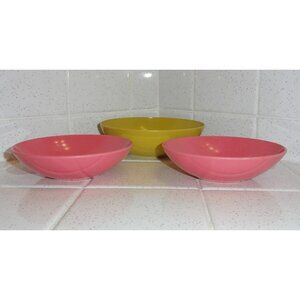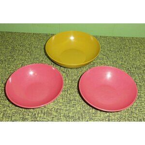 Vintage Pink & Mustard Yellow Sun Valley Melmac Snack Bowl Set of 3 mcm serving