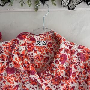 Vintage Pink Neon Floral Pajama Matching Set Medium T7023
