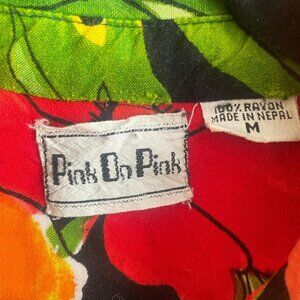 Vintage Pink On Pink Floral with Sequin Short Sleeve Button Up Shirt Size M