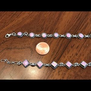 Beautiful Pink Opal Bracelet set in Silver Sterling Silver this one is a round shape stone and I have another one in a diamond shape. Both excellent quality