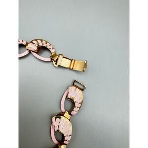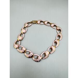 Vintage Pink Painted Floral Design and Gold Tone Link Choker Necklace