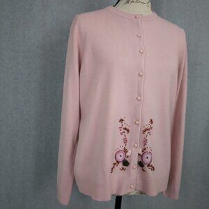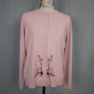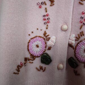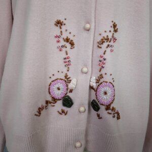 Vintage Pink Pastel Embroidered Beaded Applique Cardigan Sweater | Size L