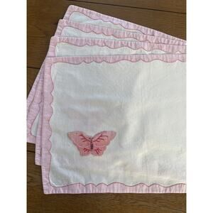 Vintage Pink Placemats Butterfly Applique Cotton Set of 4 Cottage Core
