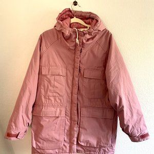 Ok, people, please get on board with this coat! Super cozy, perfect millennial pink, Hood, pockets, excellent condition. It's like a fully loaded Jeep Grand Wagoneer (which is absolutely the car you would need to drive wearing this beauty) of puffer coats. Style with a lemon yellow beanie and your favorite mom jeans!