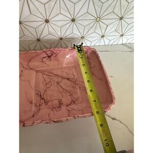 This striking vintage ceramic bowl is a true statement piece. Featuring a glossy pink glaze with dramatic purple veining, this rectangular bowl blends mid-century modern form with abstract artistic flair. The deep sides and softly squared corners give it a sculptural presence, perfect for display or everyday use.