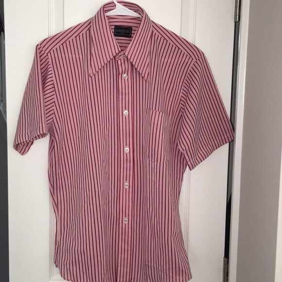 Vintage Pink & Red stripe SS big collar 1970’s disco retro wear casual shirt M
