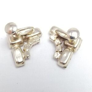 Vintage Pink Rhinestone Clip On Screw Back Earrings, Milky Opaque, 60s 70s
