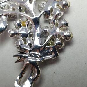 Vintage Pink Rhinestone Flower Cluster Bouquet Shape Brooch, Silver Tone, Estate