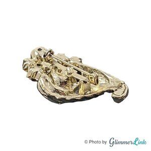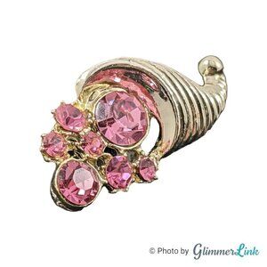 Vintage gold tone cornucopia brooch accented with sparkly pink rhinestones.