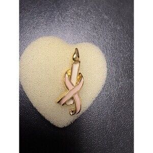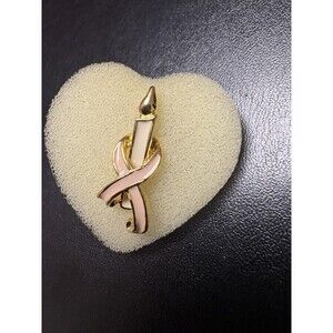 Vintage Pink Ribbon Candle Stick Breast Cancer Aware Gold Tone Enamel Lapel Pin. Condition is Pre-owned.