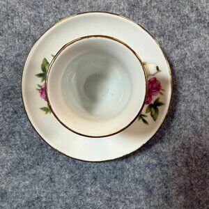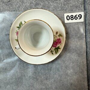 Vintage Pink Rose Cup & Saucer Tea Set Floral Gold-Trim Collectible Tableware.