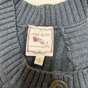 Vintage Pink Rose Stylish Navy Blue Knit Women’s Dress S