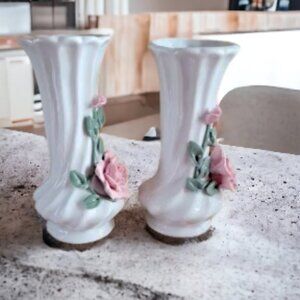Vintage Pink Roses and White Flower Vases For your Collection or for Display