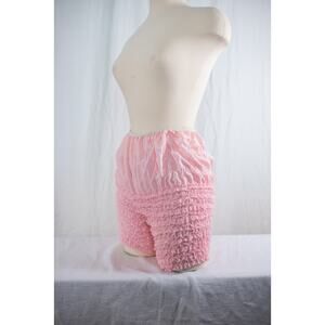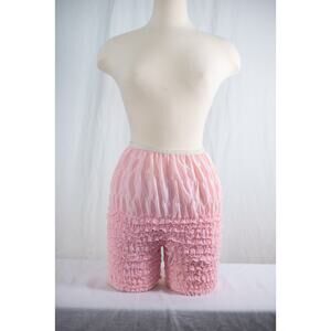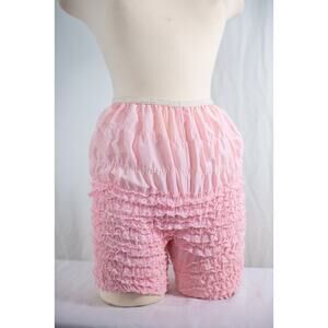 Vintage Pink Ruffle Nylon Pettipants Bloomers, Lace Trim Boudoir Lingerie Retro Burlesque Pinup Sleepwear Shorts, Size M