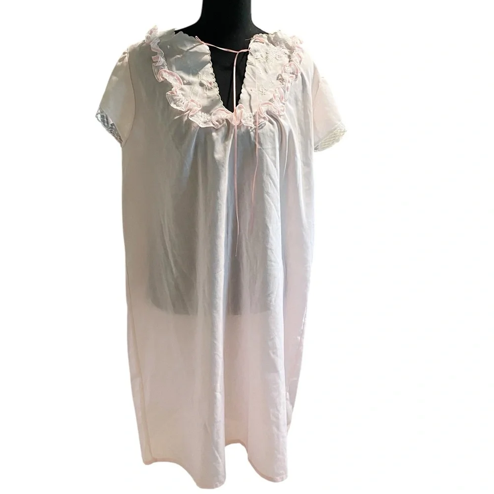 Vintage Pink Ruffle-Trim Nightgown Size Medium