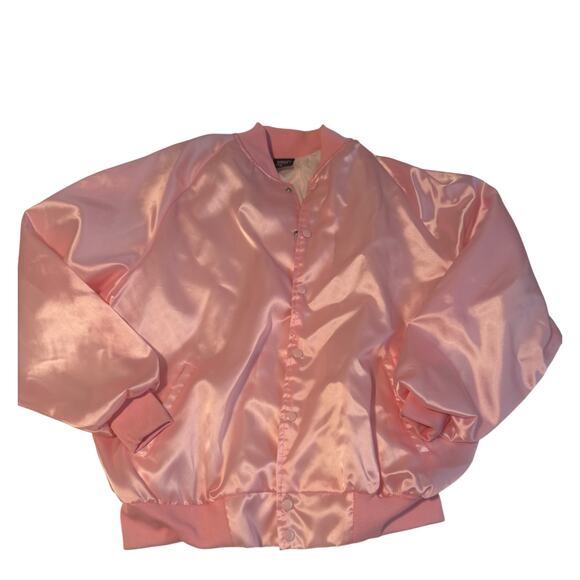 Add a pop of vintage flair to your wardrobe with this stunning pink satin bomber jacket! This jacket is in excellent condition and ready for a new home.