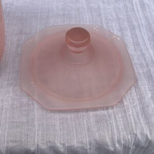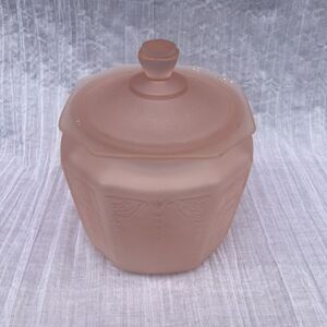 Vintage Pink Satin Depression Glass Frosted Princess Cookie Biscuit Jar With Lid