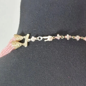 Vintage Pink Seed Bead Necklace Hook Closure