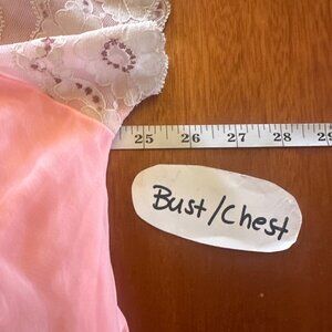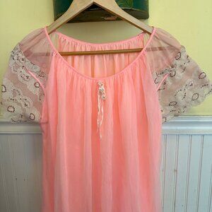 Vintage Pink Sheer Nightgown With Lace Sleeves & Embroidery Details