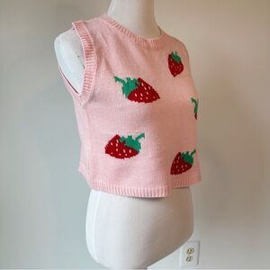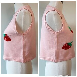 Vintage Pink Strawberry Knit Cropped Sweater Vest, size Small