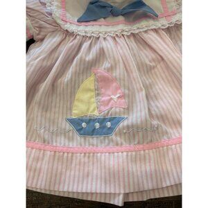 Vintage Pink Striped Baby Girl Dress Sail Boat Size 6-9 Months