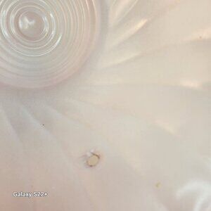 Small chips around the chain holes, light scratches on the surface. No chips or cracks on the edges. Diameter = 10.25 inches, Height = 4 inches.