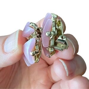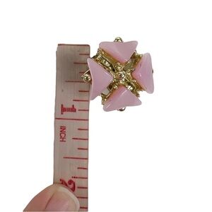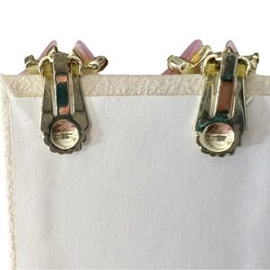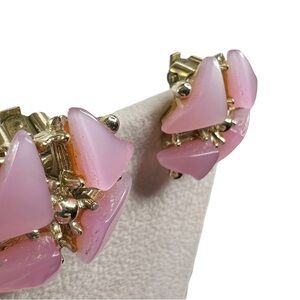 Vintage Pink Thermoset Pinwheel Geometric Gold Tone Clip On Earrings