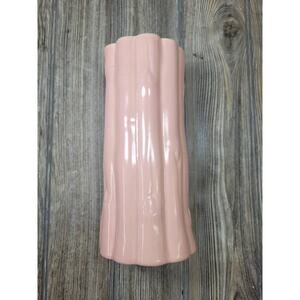 Vintage Pink Vase, Ceramic Bamboo Cylinder, 9-3/8" Tall