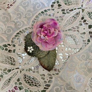 #rosettebrooch #romanticcore #velvetrose #vintageaccessory #floralbrooch