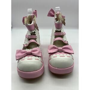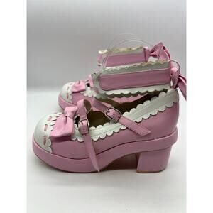 Pink and White, Mary Janes, Platforms, Chunky Heel, Scalloped Shoes, Bow Shoes, Velcro Shoes, Buckle Shoes, Retro, Rockabilly, vintage, pink up, cosplay, costume, anime, kidcore, school girl, academia, goth, gothic,coquette,