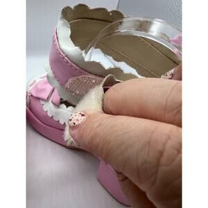 Vintage Pink White Scallop Bow Velcro Buckle Chunky Heel Mary Janes 23.5 US 7