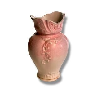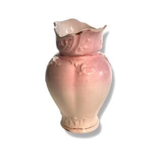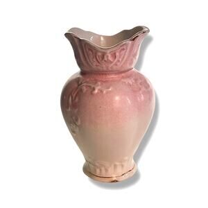 Elegant Vintage vase with a pink gradient. Features a scalloped rim and embossed details. Perfect for adding charm to any room.